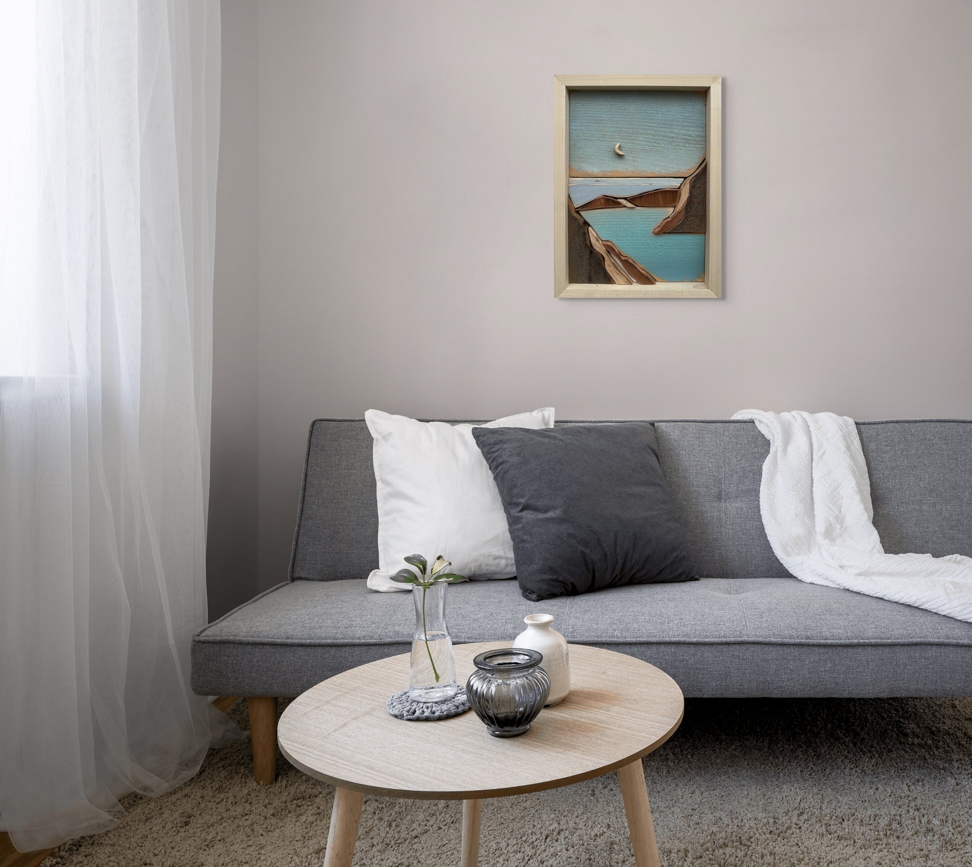 Introducing Summer Breeze, the unique 10 by 14 inch piece made from reclaimed wood. Enjoy the one of a kind design in your home, adding a touch of both style and sustainability. Perfect for adding a breath of fresh air to any room.